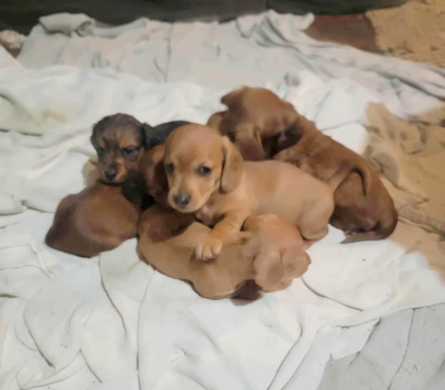 My friend in Westfield, IN (Greenwood area) has six, 4-week old pups ... 4 Males & 2 Females The Dapple, 2 Reds & the Chocolate are Longhairs . >>>>>>>>>>>>>>>>>>>>>>>>>>>>>>