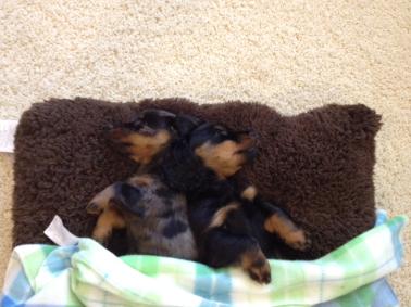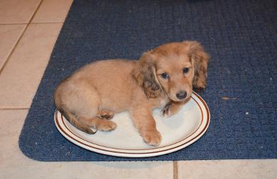 This photo was taken (12-10-10) when Tina brought Frankee along to pick up "Hope", a baby girl Cream Doxie.